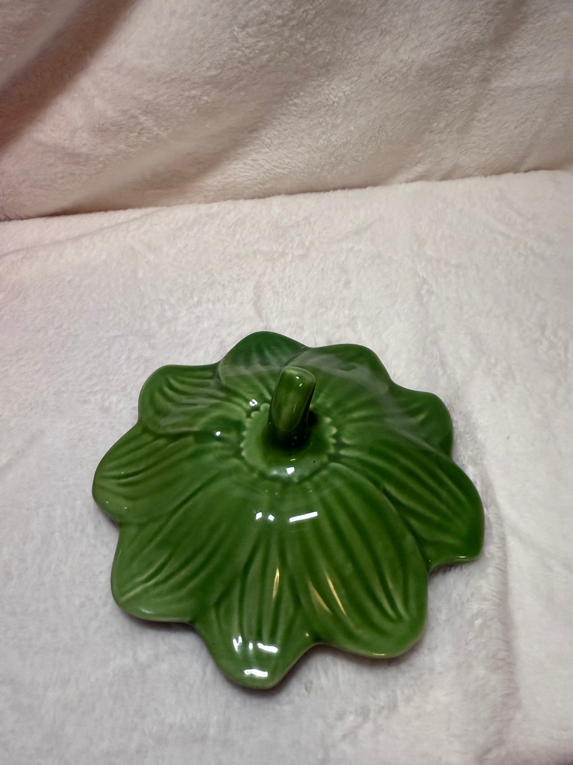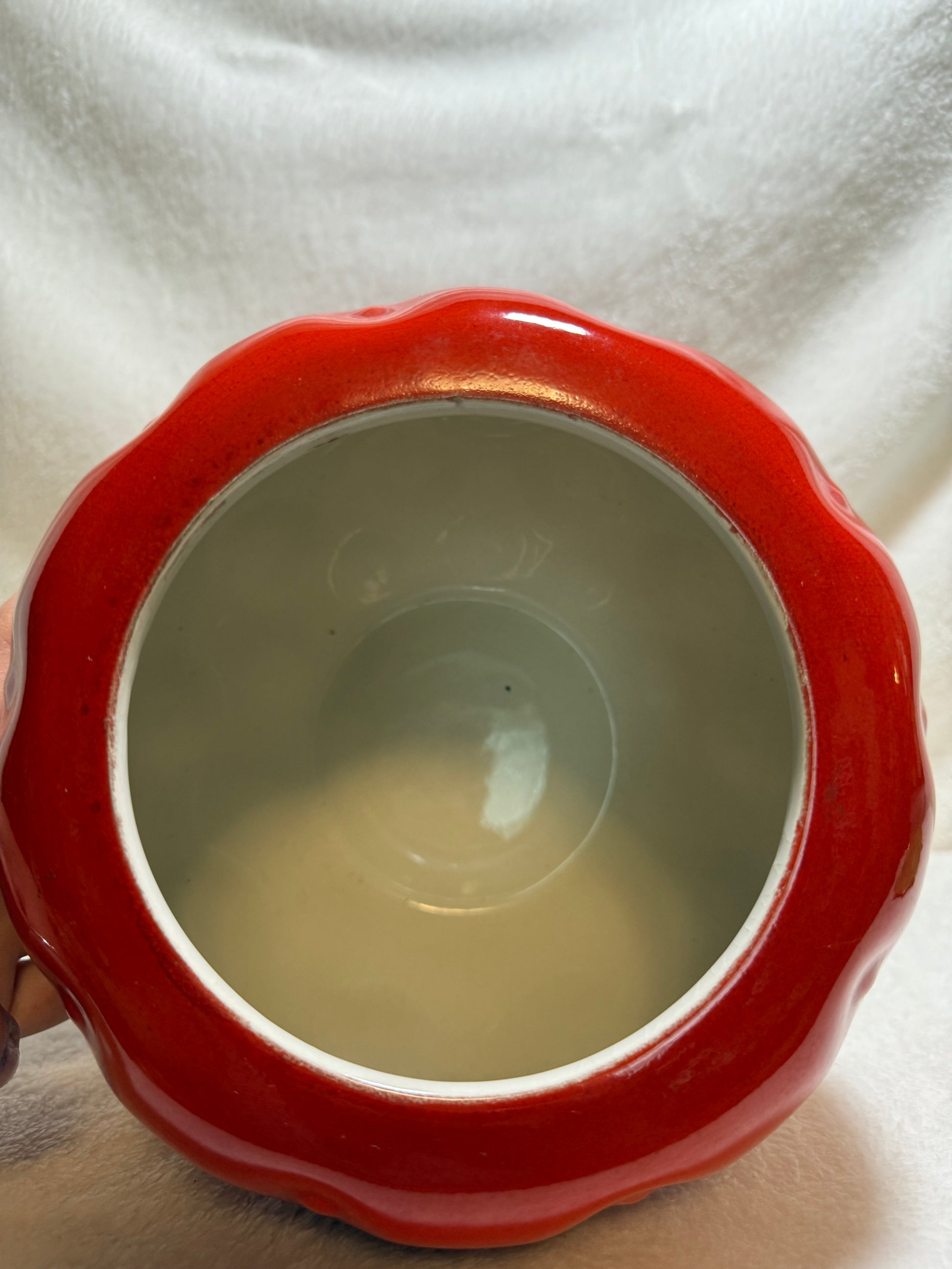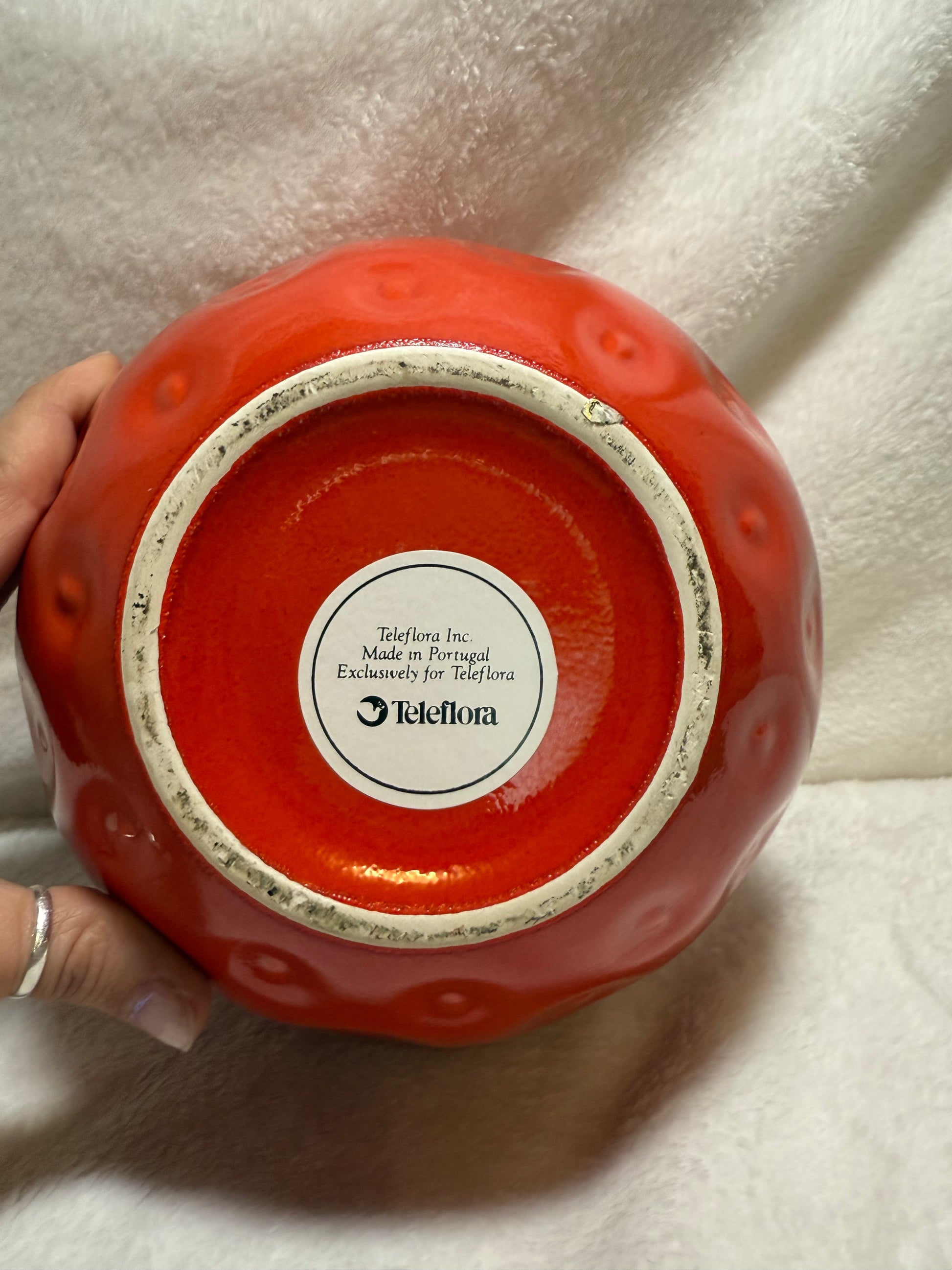 This is a nearly perfect Teleflora Strawberry Cookie Jar that was purchased brand new from a flower shop in East Asheville, NC called Sibey's by my grandmother twenty-five-ish years ago. She worked there after she retired from the Enka Plant and purchased this for her sister, my great-aunt who just recently lost her battle with dementia. I inherited her collection a few years prior to her diagnosis and its time for me to share the love of this item.