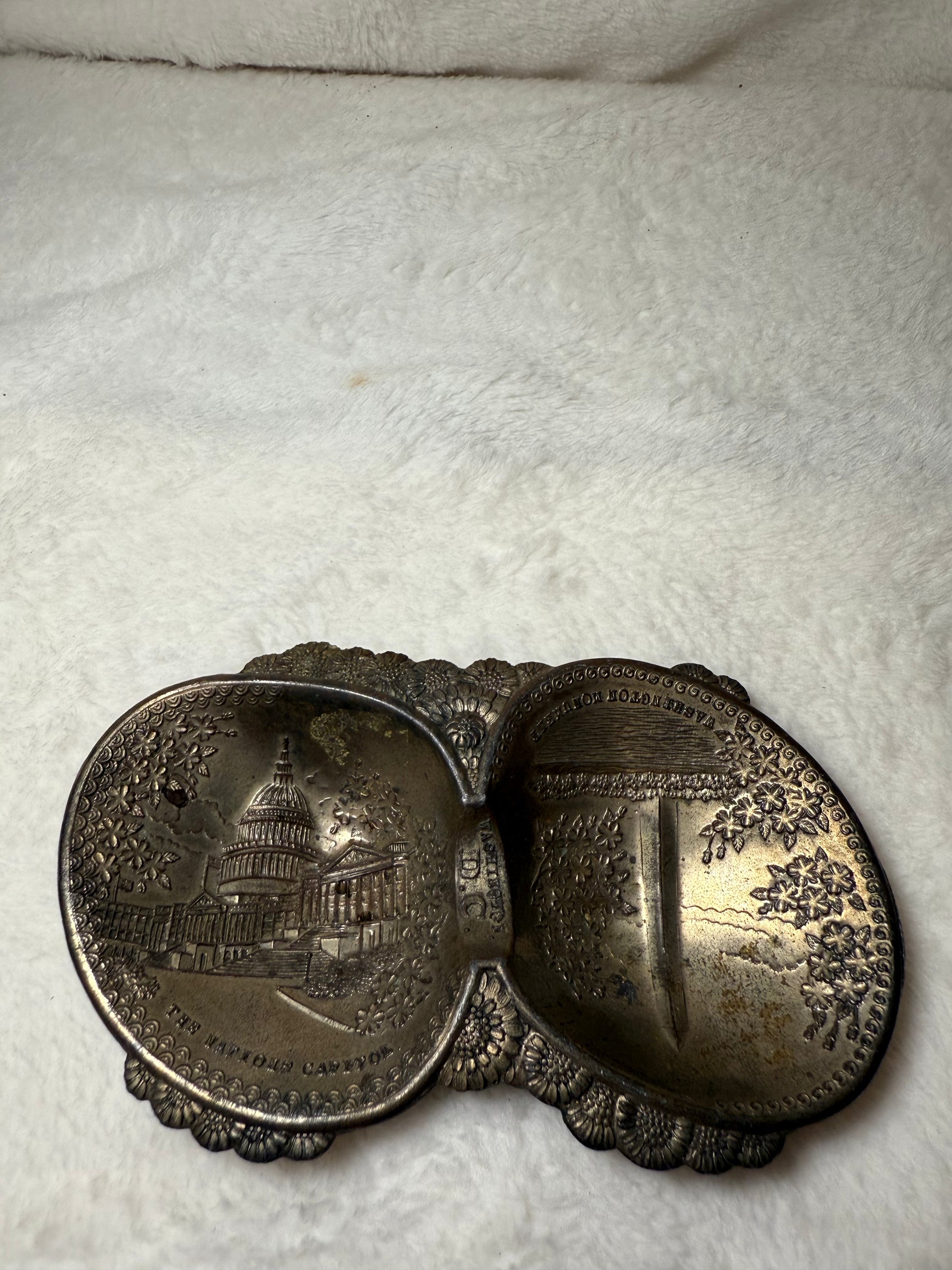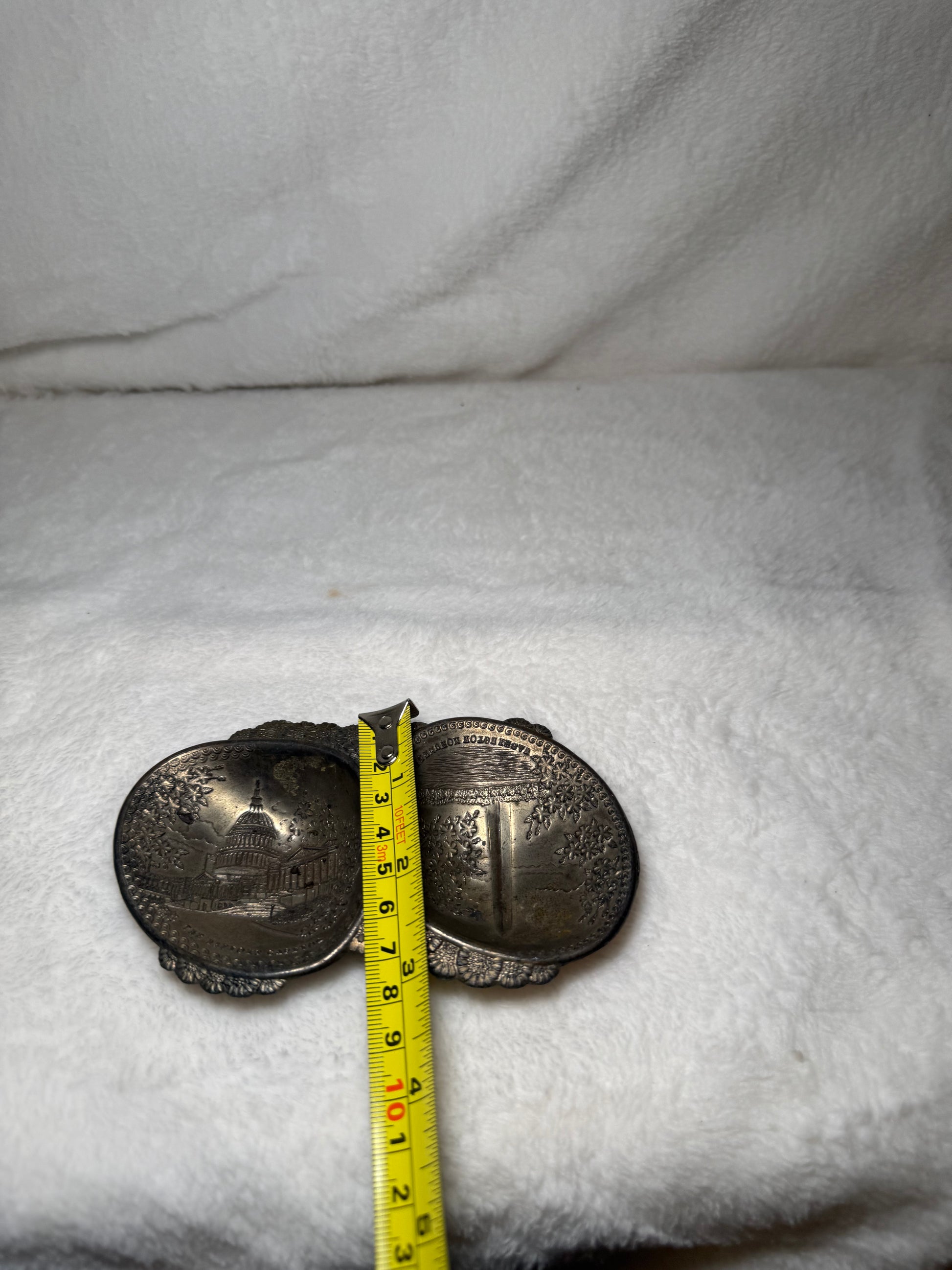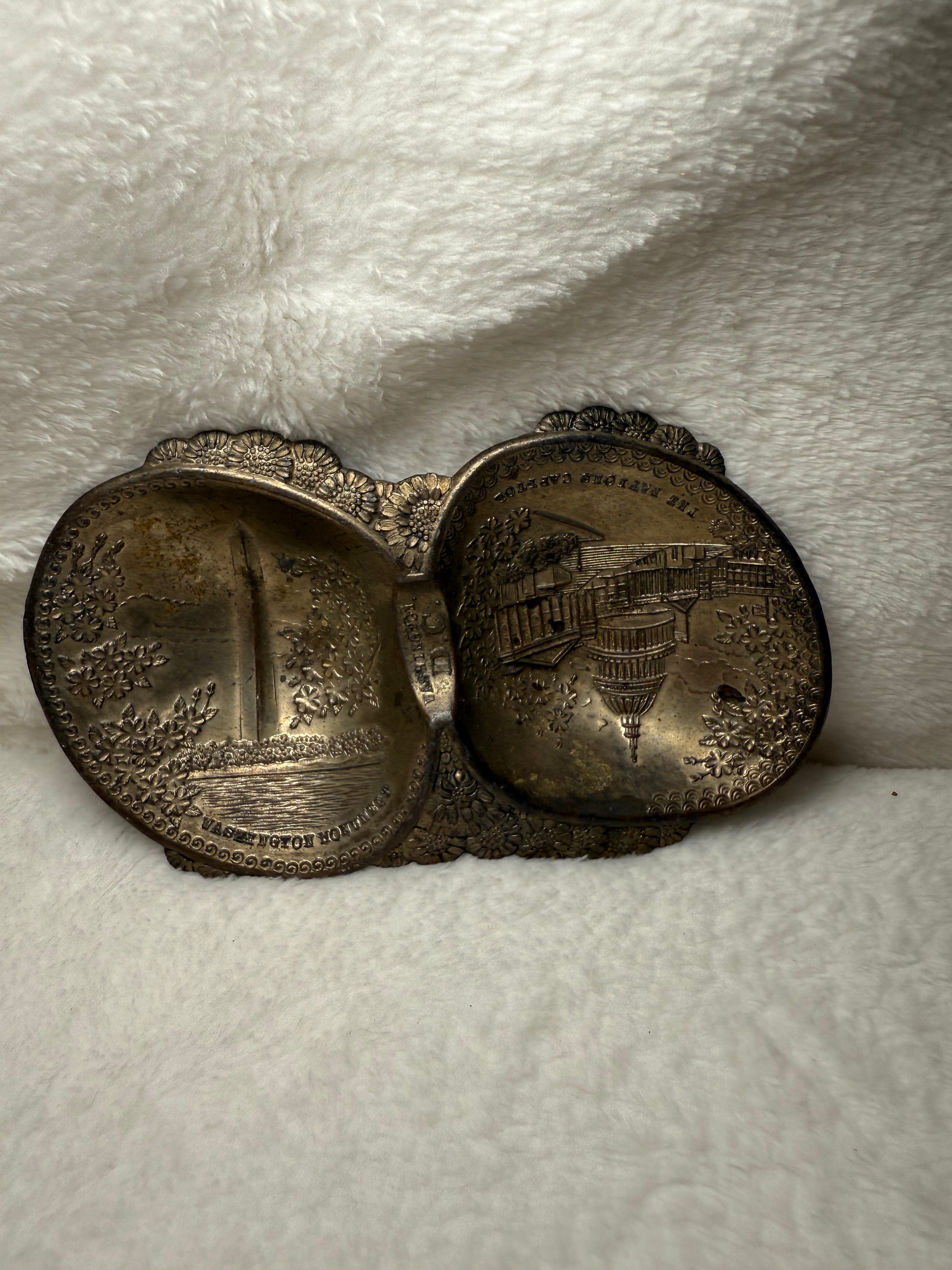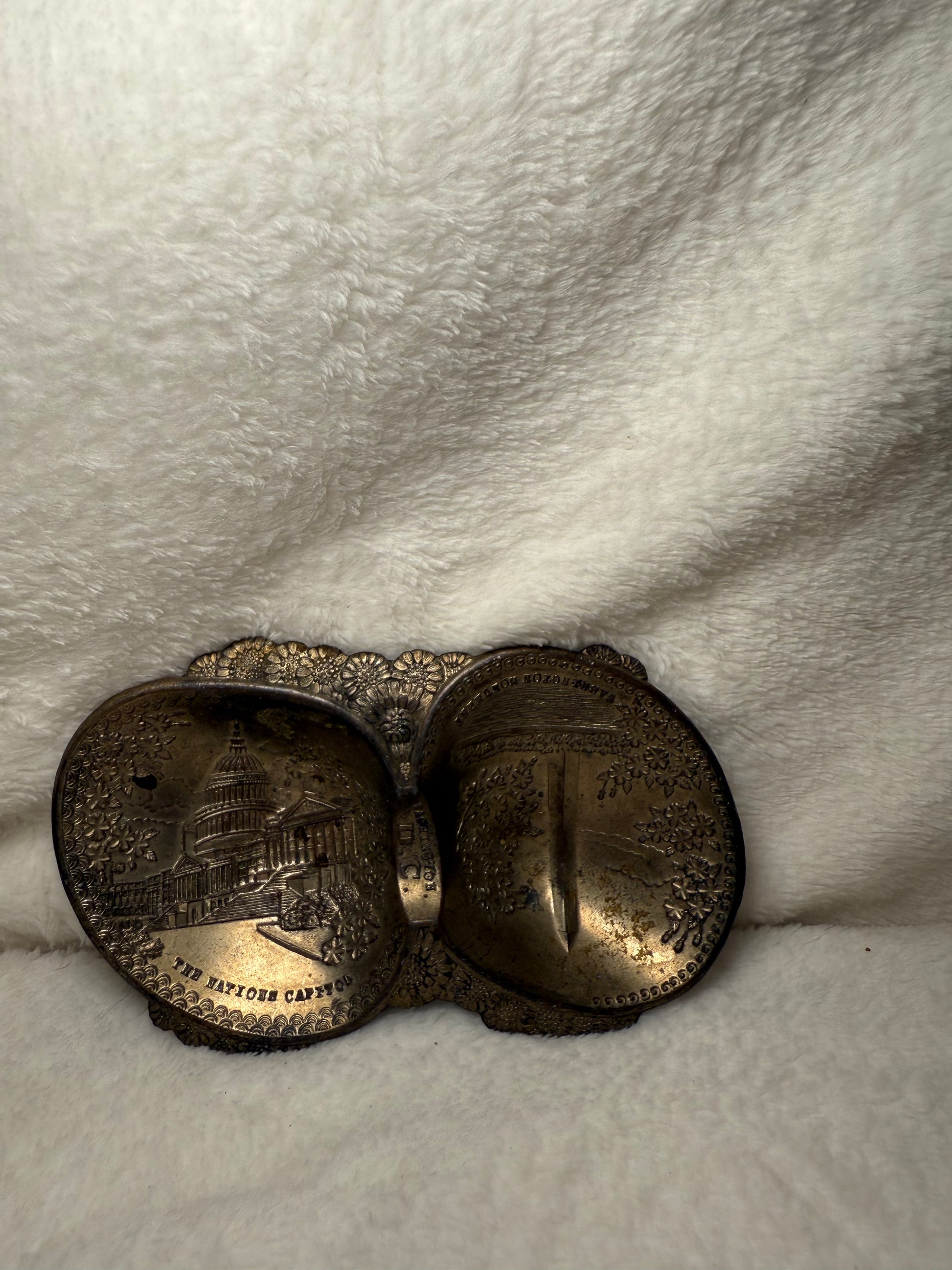 Occupied Japan Washington DC Souvenir Ashtray. One side depicts the US Capitol Building while the other side shows the Washington Monument.